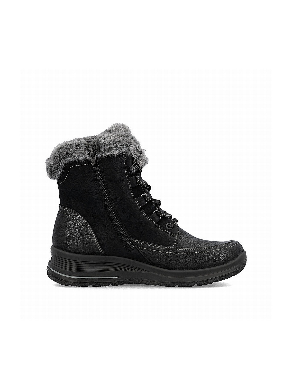 Зимние женские ботинки Rieker подчеркнут индивидуальный стиль и согреют ноги в холодную зиму. Модель привлекает внимание актуальным дизайном – на молнии сбоку, на шнуровке и толстой подошве, при этом гарантируя практичность и комфорт.
